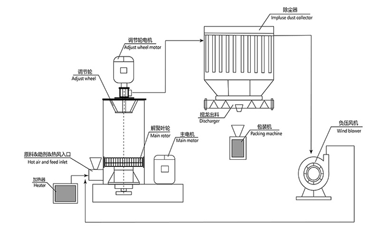 3.腔體高大利于風(fēng)流旋轉(zhuǎn),讓粉體在較大的空間內(nèi)互相碰撞而得到充分摩擦和活化,提高效率。